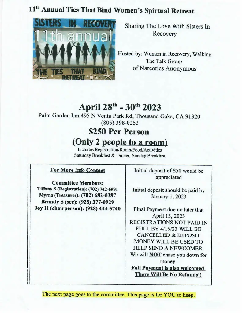 Sharing the Love with Sisters in Recovery. Ladies join us for a weekend of fun, food, fellowship, crafts and connection. $250 covers registration/room/food/activities, Saturday breakfast and dinner, Sunday breakfast.