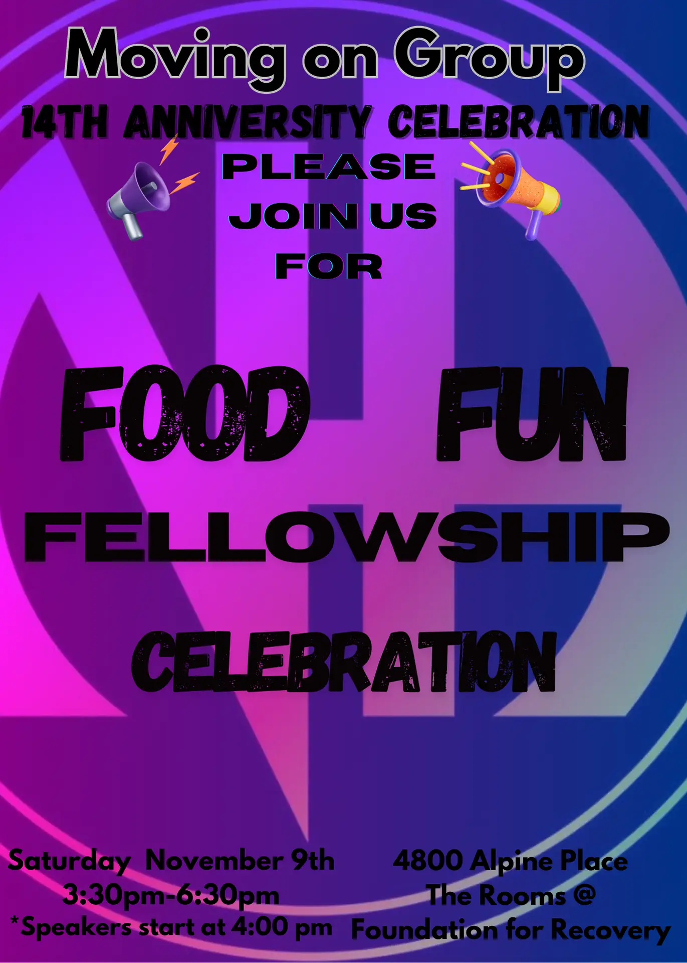 Our group has turned 14 years old. We are one of the longest running meetings in the Las Vegas Valley. There will be Free Food and Fellowship.
