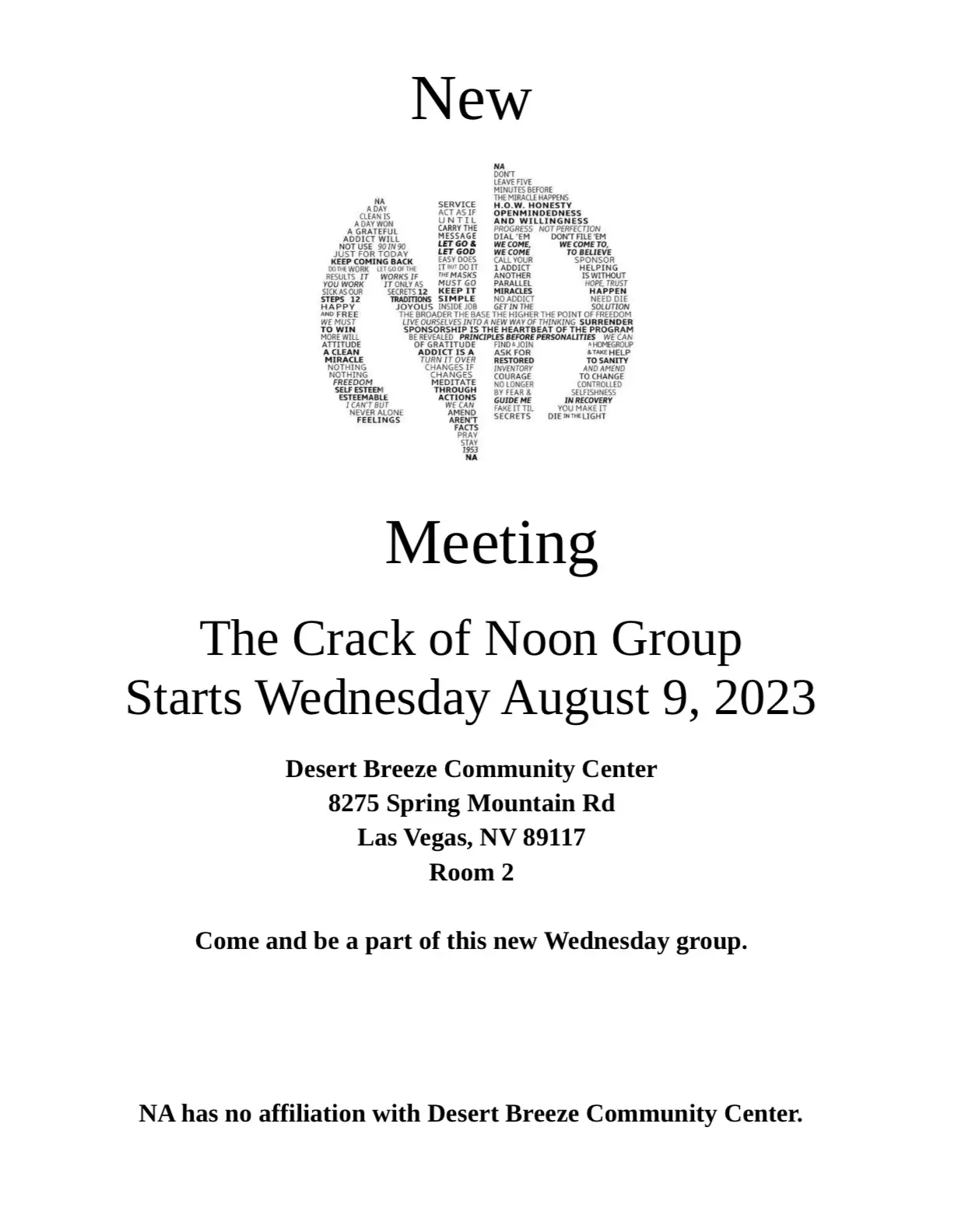 The Crack of Noon Group Desert Breeze Community Center 8275 Spring Mountain Road Las Vegas, NV 89117