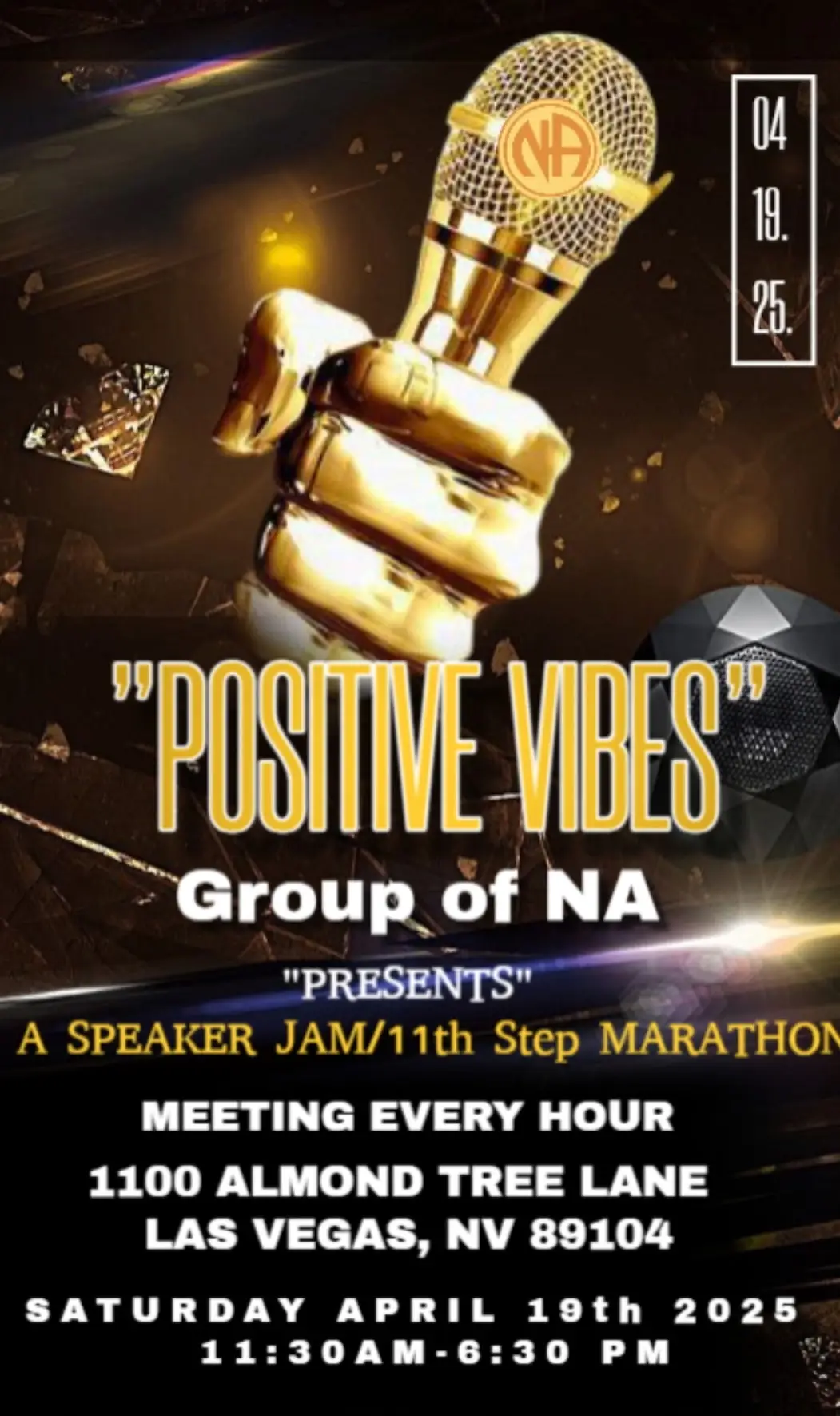 Positive Vibe present a 12 Step Speaker Jam from 11:30 am to 6:30 pm, a speaker every hour.