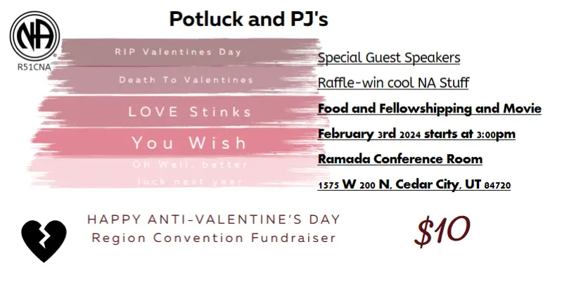 Special Guest Speakers, Raffle drawings to win cool NA stuff, Food and Fellowshipping, and a Movie Entry is $10 per person.