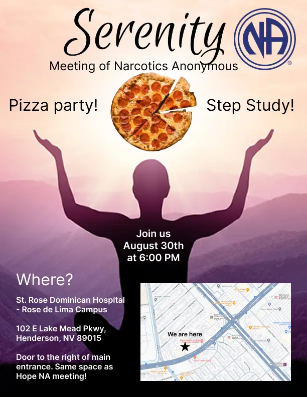 We have step study meetings every Friday night at 6pm. Friday Aug 30th is pizza night.