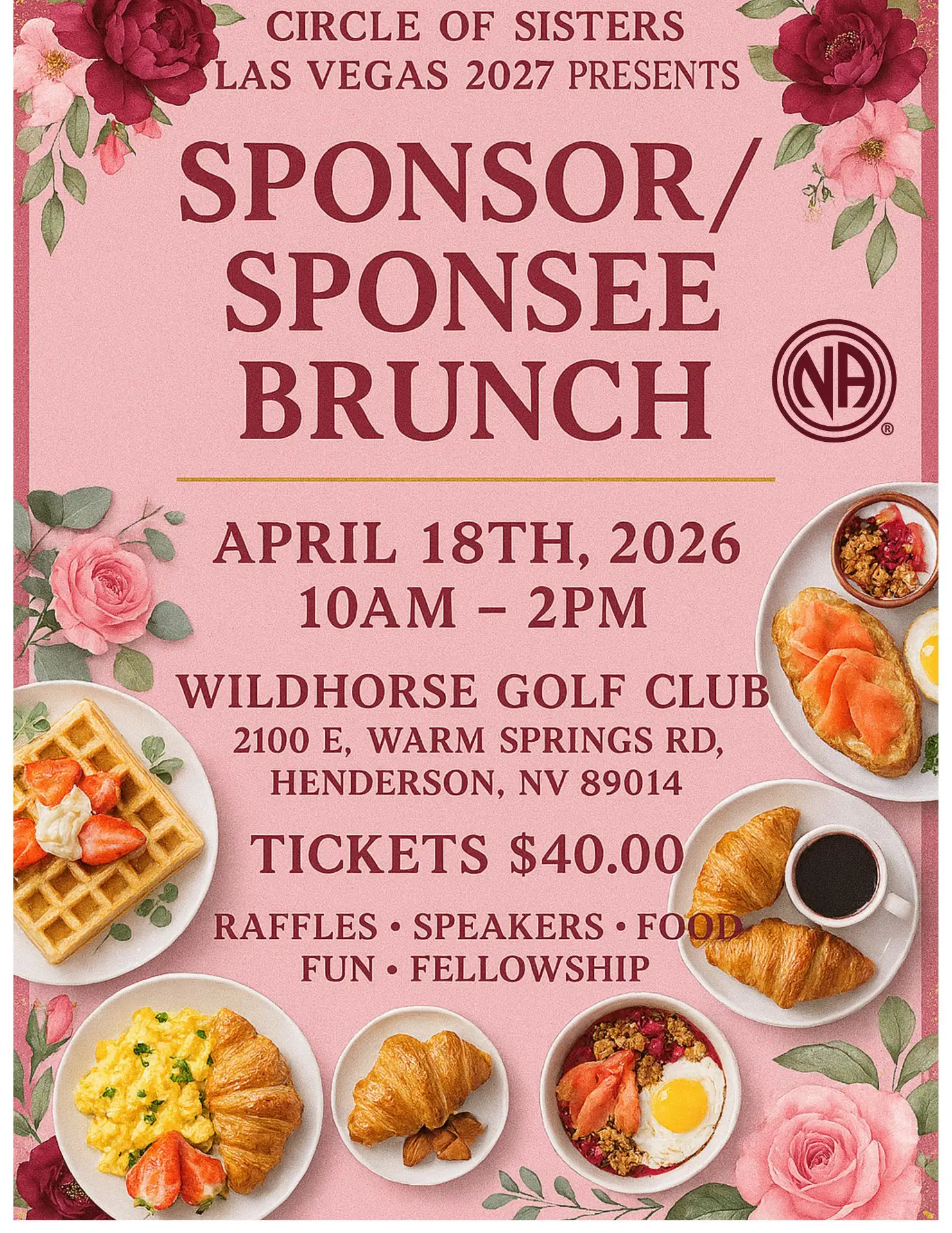 Apr 18 SPONSOR/SPONSEE BRUNCH 10:00 am - 2:00 pm Wildhorse Country Club 2100 W Warm Springs Rd, Henderson Event Details Get Directions