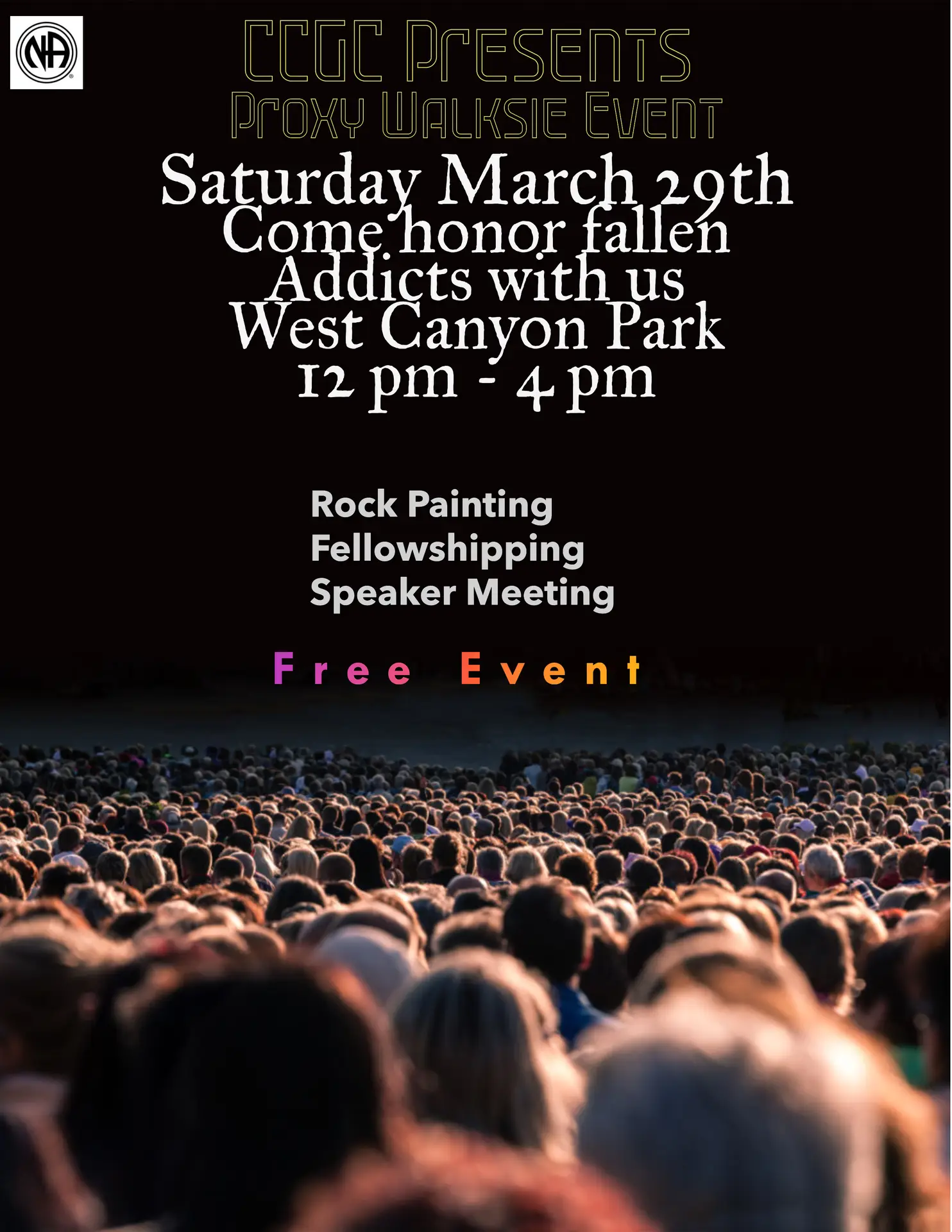 Come join CCGC for a proxy Walksie event to remember the ones we lost in addiction. Rock painting, fellowshipping, and a hike ending with a great speaker sharing about spirituality.