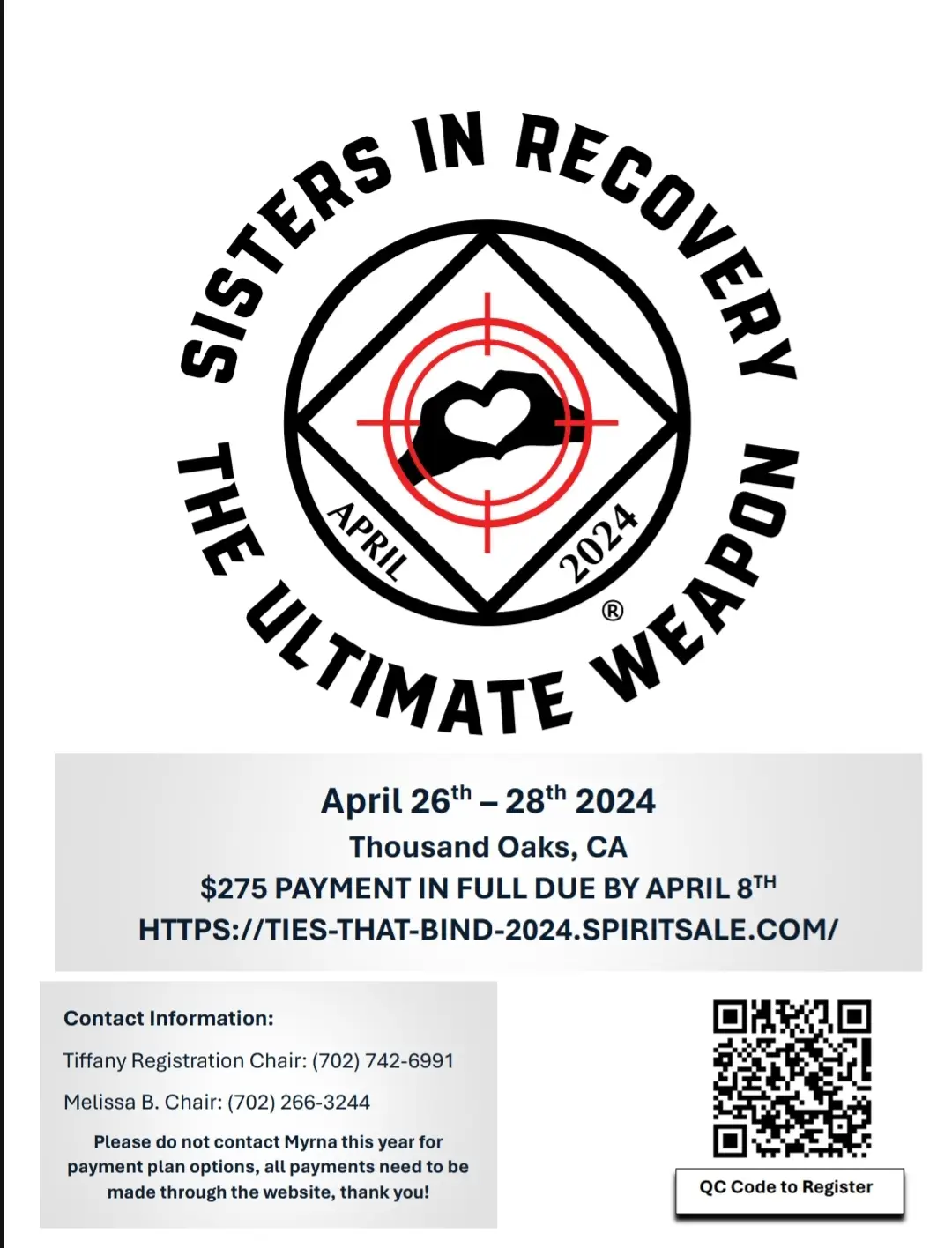 Palm Garden Inn Thousand Oaks, CA 495 N Ventu Park Rd, Thousand Oaks, CA, United StatesSharing the Love with Sisters in Recovery. Ladies join us for a weekend of fun, food, fellowship, crafts and connection. $250 covers registration/room/food/activities, Saturday breakfast and dinner, Sunday breakfast.